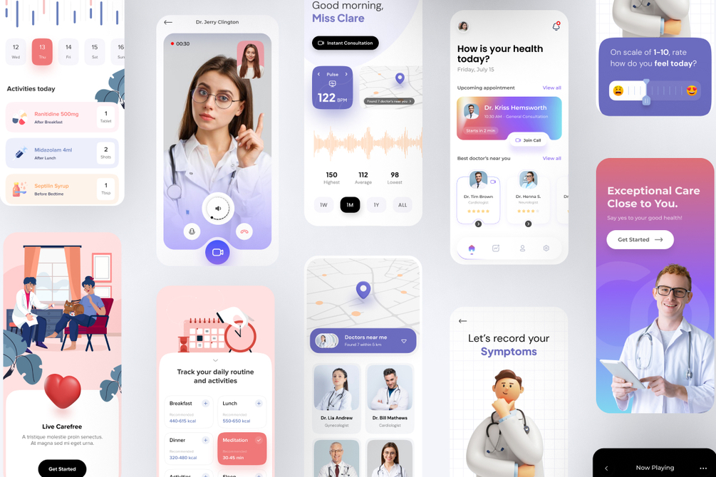 Hey there, A healthcare mobile app design collection, for mobile app design template download, designed with a modern look, suitable for all business size, small startups to a enterprise size business!