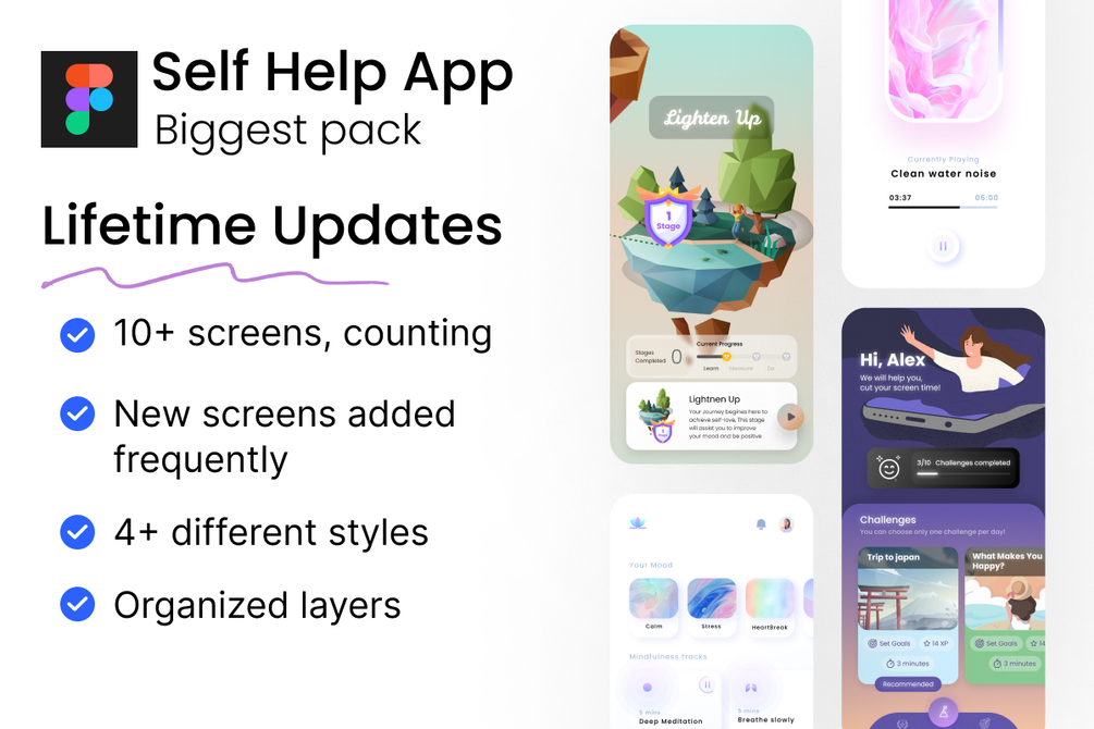 Hey there, A modern self help, self development app design ui kit, for mobile app template download, designed with a modern look, suitable for all business size, small startups to a enterprise size business!